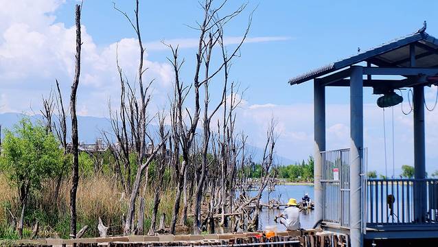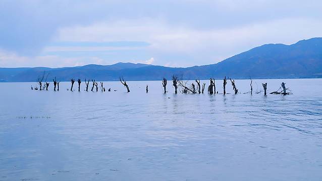 在海舌公园里,也能看到在洱海里的枯木。浅滩、枯树、海浪..... 构成了最美的自然画卷。