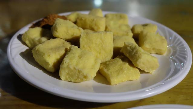 这家的石屏豆腐也让人大饱口福,里面嫩嫩的,外面酥脆,蘸上辣椒面,简直是绝配!
