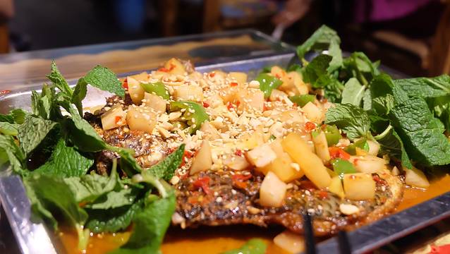 马帮烤鱼是这家招牌,基本每桌必点,这道菜最让我喜欢的是配菜,麻辣味的烤鱼配以酸萝卜、薄荷叶,这种简直是神仙搭配,吃起来太爽口啦!一点都不会觉得腻!
