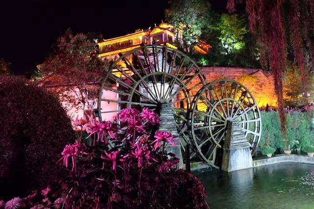 大水车是丽江古城的标志性建筑,也是来丽江旅行很多人都会去拍照留念的地方。晚上的大水车也依旧人气不减,周围全是人。
