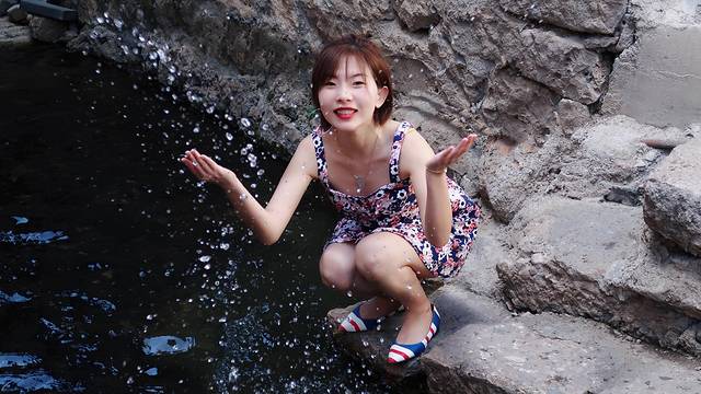 在小河边开心的玩耍,似乎拥有了一片独享的私人空间。