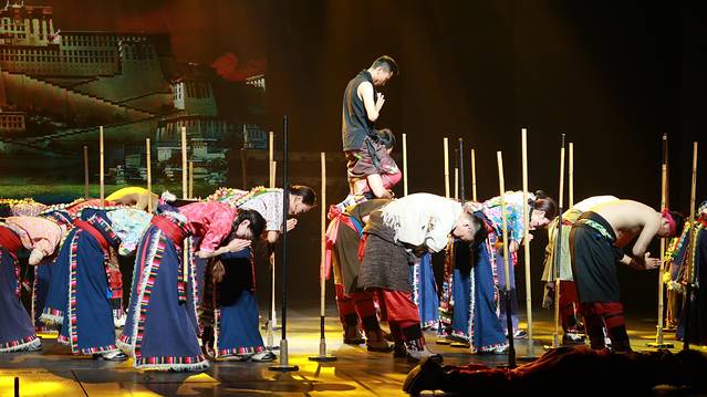据说《藏谜》中藏族的音乐、舞蹈、服装、器乐、道具,很多来源于民间的收集和整理。
