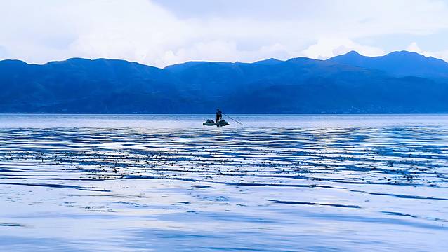 偶尔看到有渔民泛舟洱海,在湖面上飘荡,背后辉映着山,简直是大自然最美的山水画。
