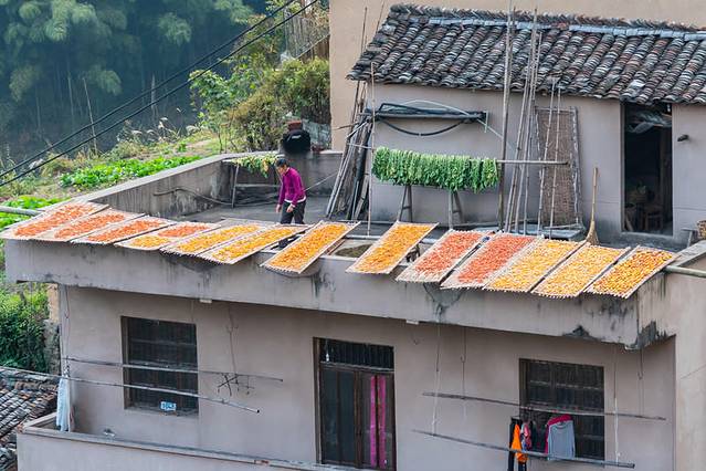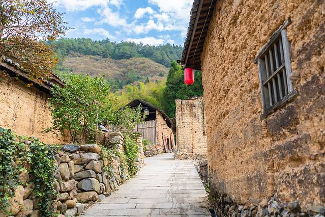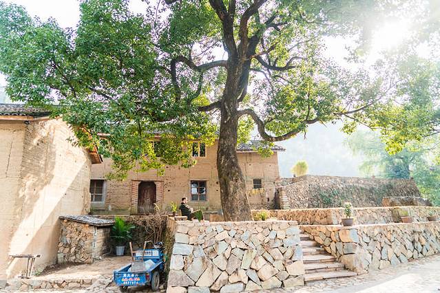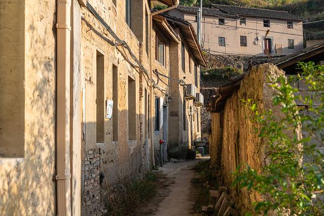 平田是传统的,黑色的瓦片与夯土的黄墙构成了整个小村庄。这里的一切都散发着古老的韵味,薄雾更是为此蒙上了神秘的色彩,仿佛这里与世隔绝,安静的没有一丝打扰。整个村子里的人不多,远离了城市中的喧嚣与吵闹,宛如一片世外桃源。
