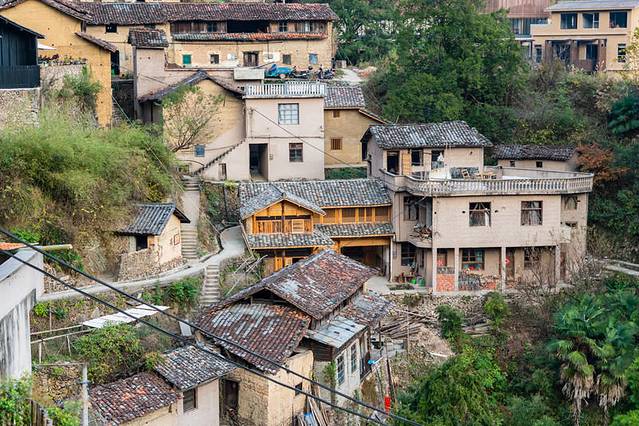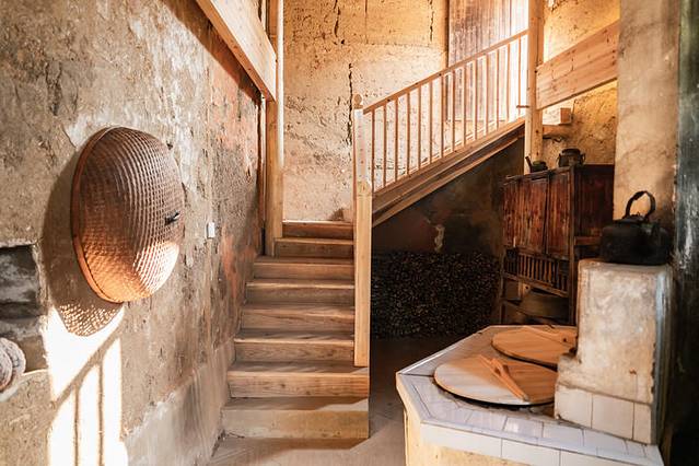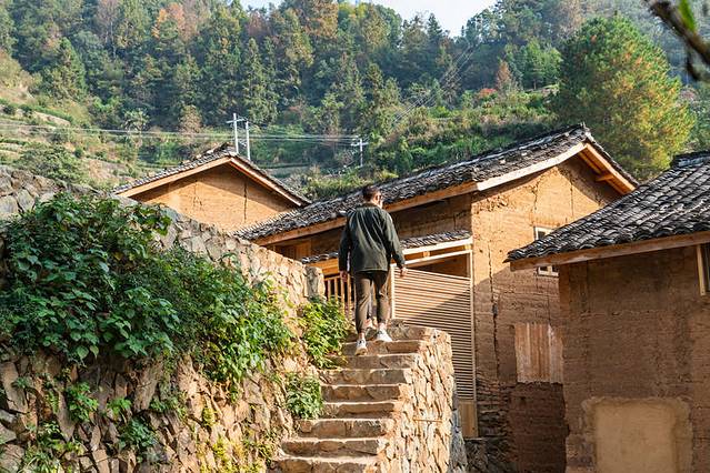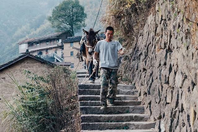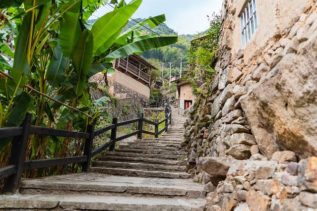 地处大山深处自有大山深处的威严,这里的石头都是有棱有角的,即使历经百年沧桑,依旧挺固着着自己的坚持,不带一角的圆润。有些房屋就建在凸起的大石头上,村民就势利用,用石头砌起几米高的墙脚;有的房屋干脆不打泥墙立面,直接用石头垒成外墙;有的房屋在前后屋子的逼仄中建起了左上右下的石台阶……放眼望去,石墙、石阶、石巷,构成了一个石的世界,仿佛到处都是石头。