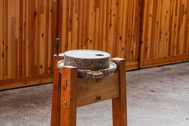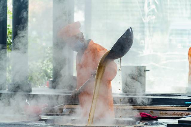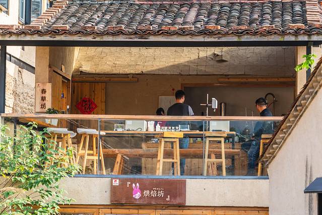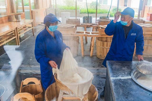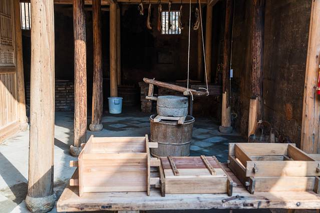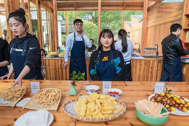 豆腐工坊活动区域分为:磨豆、点卤两个体验区,以及油豆腐品尝区。手工压制而成的豆腐,嫩而不碎,带着韧劲,大豆的清香和微微的咸味交织在一起,形成无法言喻的美味。炸完微微热的油豆腐,外皮酥脆,软韧的口感还保留着豆腐的清香。层叠丰富的口感,正如石仓交错的古民居一般。
