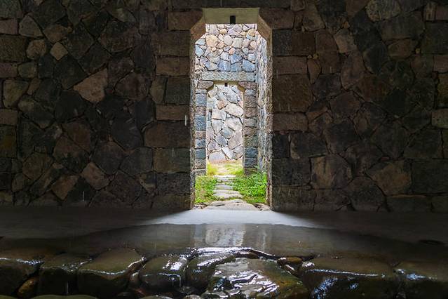 契约博物馆位于六村和七村边界,依山坡而建,处于村庄和梯田的交汇处。房屋墙体全部采用当地石材砌筑,从远处看过去,如同河岸或山上梯田的挡土墙,与环境融为一体,与四周的村庄中心和交通流线相互呼应并补充,并连接起六村和七村形成环路关系。
