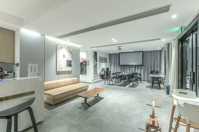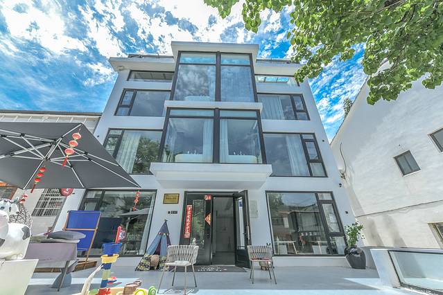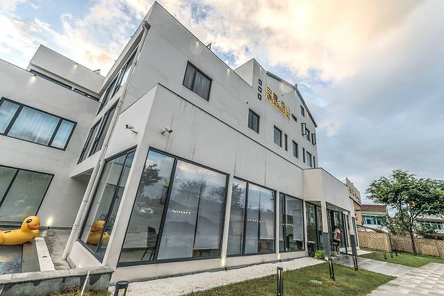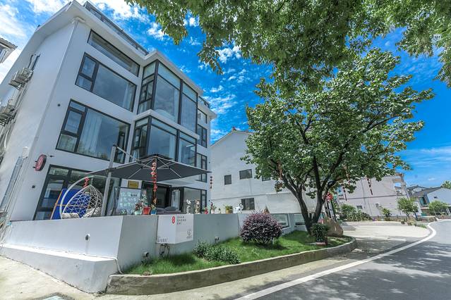 看似与其它民宿外观并无两样的外景其实大有文章可言,首先走的是简约文艺风格,蓝天白云下的房屋颇具美感。阳历5月份的江南不知道有多美,不知道有多舒服。在该民宿院子里小坐一下子,或品茶、或喝咖啡、或闲聊、或是发呆,美好的午后时光想怎么打发都可以,无所禁忌。