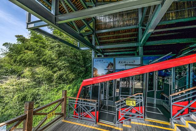 地面轨道交通车辆也叫地面缆车交通,车身是全玻璃的,所以观光视野好,可以让游客体验不一样的竹海旅行。从竹海景区门口乘坐几分钟时间的小火车抵达终点站就可以换乘地轨了。在景区内的轨道交通,我相信大家还是比较不多见的吧?