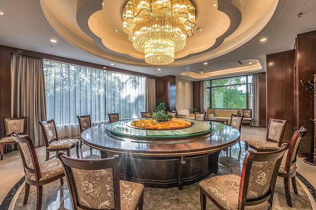 溧阳悦南山温泉酒店是一家有当地客商投资开放的高星级酒店,其下这家中餐厅是按照国家四星级旅游饭店的标准来建设的,其硬件条件与就餐环境与很多五星级酒店的配套餐厅相当。这家酒店坐落在溧阳南山竹海景区商圈内,到南山竹海正门仅几公里路程,很少有人会相信这种餐厅会是私营酒店的配套设施。