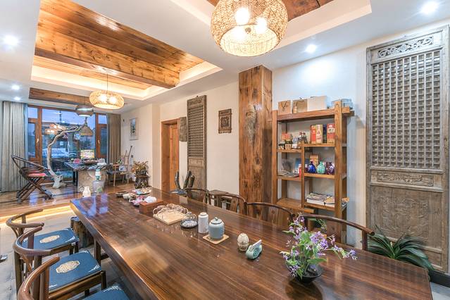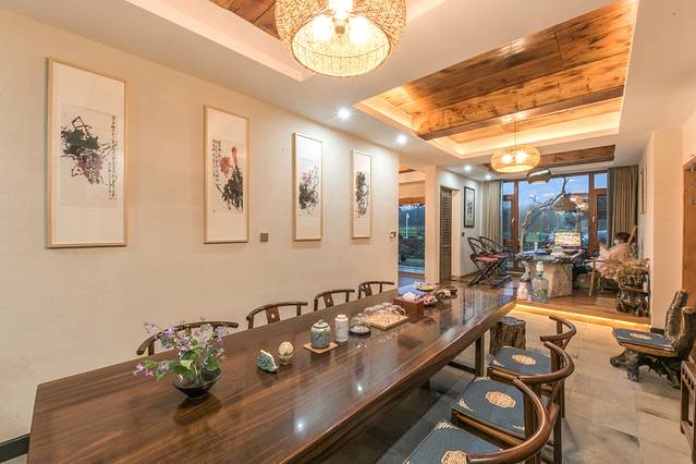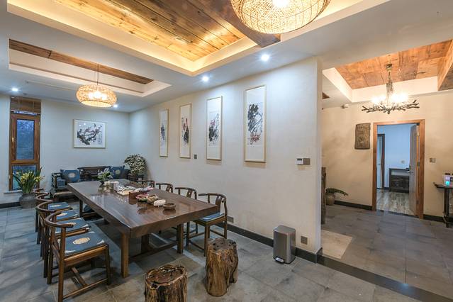 山笙石民宿大厅面积很大,像极了自家房屋的客厅。中间的过道划分了大厅的不同功能,山野君所在的位置是闲聊喝茶的地方,而远处则是会客厅、餐厅以及多媒体厅的综合体,布局科学而合理、美观且大方。入住该民宿感觉非常好,第一印象就觉得很有档次与品位。