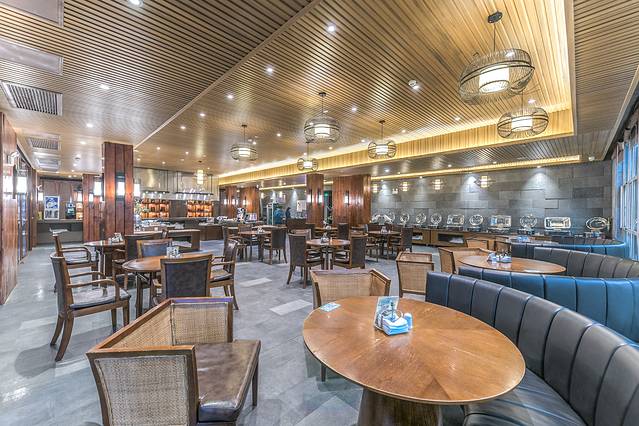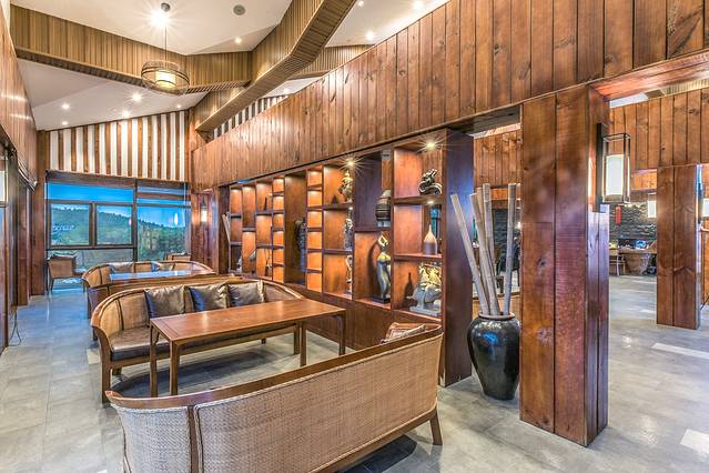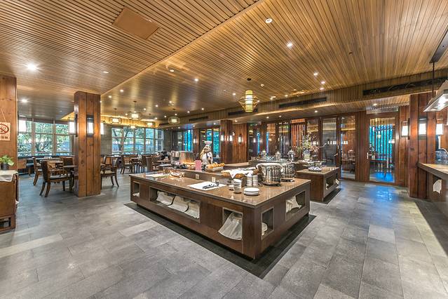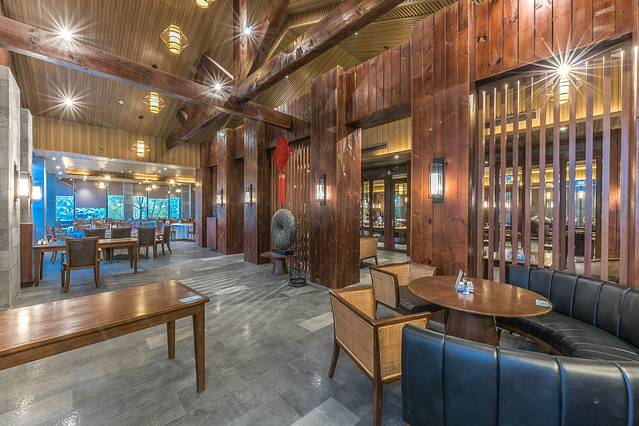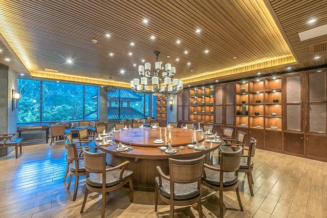 每到一处甚至是一个角落里,都能感受到极简主义与古色古香完美结合,餐厅顶部是江南地区最为常见的装修格调而下方则带有现代文艺与极简主义的气息。突然间,山野君觉得溧阳南山竹海景区的这家悦南山温泉酒店中餐厅可以用建筑艺术来加以描述了。