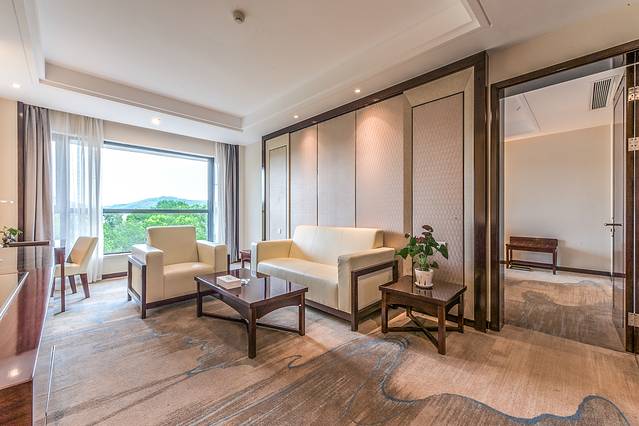 山野君下榻的客房是行政套房,也是特色观景房。住在客房内可以欣赏到外面美丽的天目湖风光,感觉真的太棒了!房间之间的格局也非常不错,很惹人喜欢。