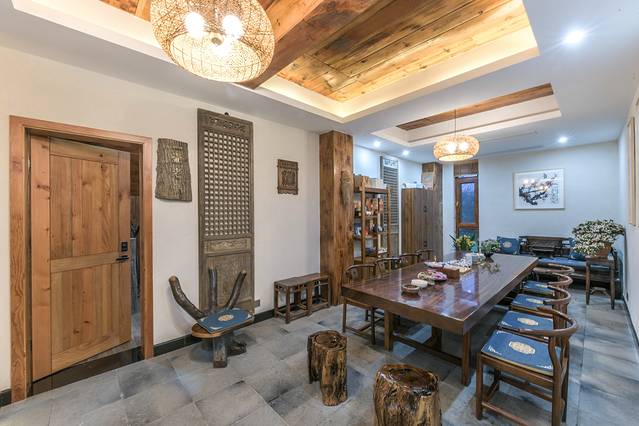 溧阳安云观山民宿在设计方面吸收了西方工艺与中式传统居家风水,这种中西合璧的艺术美在大厅处处可见,山野君在大厅呆了很久,对这种环境非常喜欢。