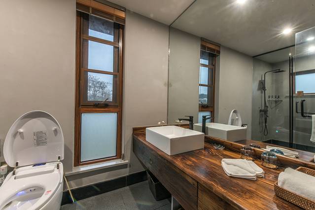卫生间的整体面积非常大,且环境典雅、舒适!干湿分离与错落有致的布置让民宿沾染了奢华的气息。入住在这样的民宿、这样的房间内真的太享受了。不知道你们是不是也跟山野君一样喜欢山笙石民宿,喜欢这样的房间环境呢?