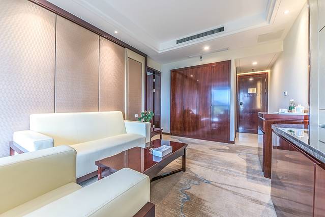 房间的会客厅比较大,看起来应该至少有30平方米,无论是开小会议还是一家子人相聚于此,都非常合适。我很喜欢这种环境的酒店,尽管它叫做宾馆。