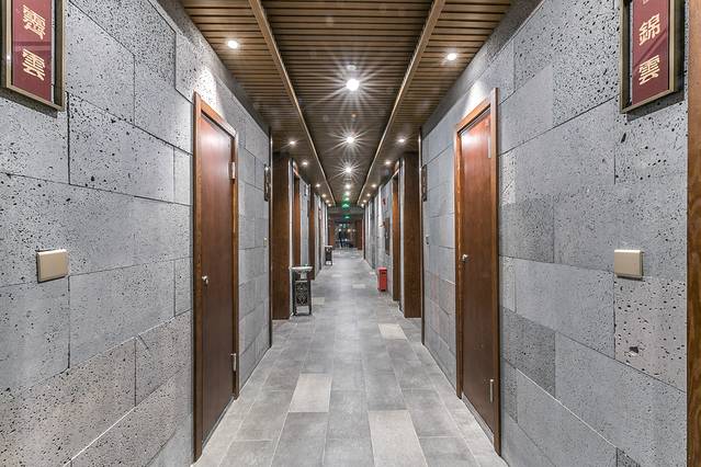一条数十米长的过道将餐厅划分为大厅区与包厢区,过道最里面的是餐厅的公共就餐区而过道两侧则是包厢区,这种设计很美观也很科学,不仅充满利用了空间资源,还将科学利用空间的特色转化为建筑学的空间艺术,堪称一绝!