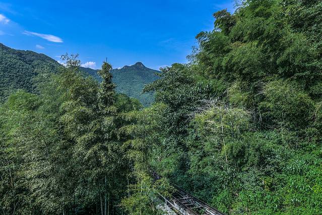 站在地轨鸡鸣村站观景台上能欣赏整片绿油油的竹海风光,远方的山峰就是溧阳乃至整个江苏最高海拔的山峰,美其名曰吴越第一山峰。