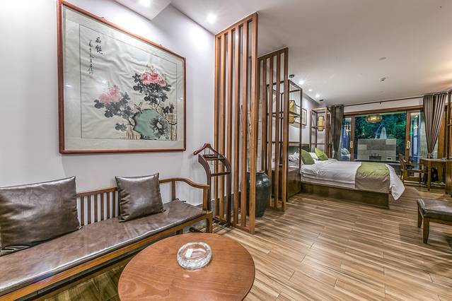 装修格调高雅、设施用品高端的醉悠然是有资格成为全市乡宿标杆的!在高星级酒店配备的布草、中央空调以及大品牌卫浴用品等诸多方面在醉悠然也应有尽有了。与其说它是高端乡宿民宿,还不如说是顶级田园式民宿。