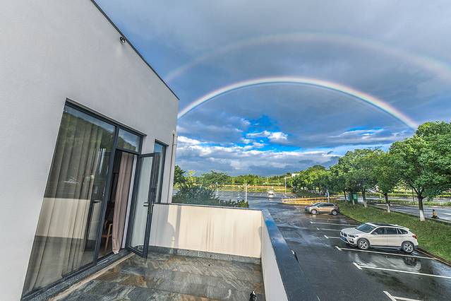 客房外的阳台上可欣赏蓝天白云,雨晴后还能看到漂亮的双层彩虹。彩虹、蓝天与白云形成的自然风光非常令人陶醉。安云一词大概与这些有关了吧?