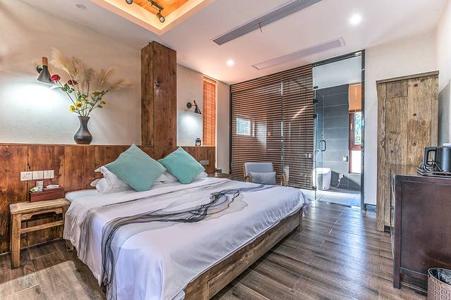 说是民宿格根据,实际上是高端酒店式民宿。无论是装修格调还是材料用品都相当高端。比如这种奢华酒店才会有的床单与布草,中央空调以及国际品牌的卫生间设施等等,看似是高端民宿,实际上是上档次且有一定格调的酒店式民宿,这种风光博采众民宿之长,打造出属于自己的醉悠然民宿。