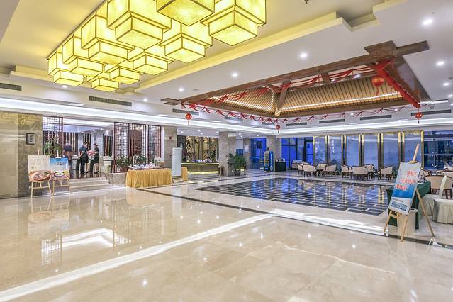 这是地处江苏溧阳的一家星级酒店的大厅,看起来比较有高星级酒店的气势。无论是空间布局还是整体设计方面都有国际大酒店的氛围,如果我不告诉你们的话,你们能猜得出这是溧阳哪一家酒店吗?