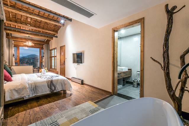 与一层房间不太一样的可能就是这个独立的观景浴缸了,这种私密性极佳且视角极好的位置,难道你不想到此小住几晚吗?看到这种房间难道不想跑泡在浴缸里享受一番?高端的硬件设施与朴素典雅的民宿环境,怎能不惹人爱呢?这种民宿在溧阳甚至整个江苏都不太多见,我个人很喜欢这种民宿。