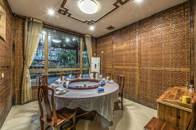 一楼大厅的大包厢有4-5张餐桌,可以作为办婚宴酒席等使用。内部环境好,灯光是明亮而不刺眼。空间格局大而不空旷,没想到在距南山竹海景区9公里的横涧村李家湾中心还能遇到这样规模与档次的农家菜馆,完全出乎我的意料。无论是餐厅的设计还是格调方面,都会将当地的竹文化表现出来,颇具艺术审美感!