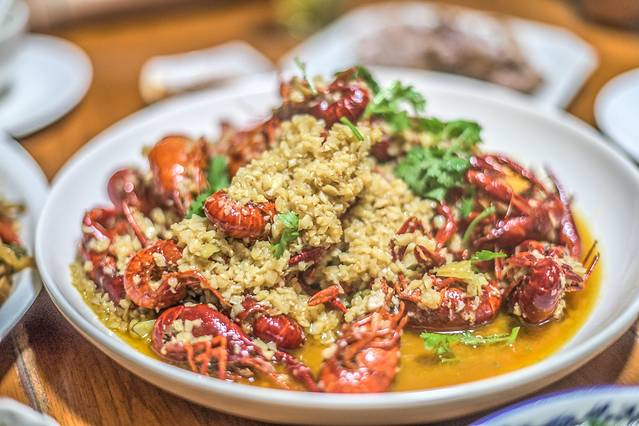 蒜香微辣型龙虾是苏浙皖交界的地区常见的做法,这种龙虾的做法在溧阳、郎溪、广德、宜兴、长兴、宁国和安吉等地比较常见,且味道都是大同小异。在溧阳可以吃到颇具溧阳风味的龙虾,如果来溧阳南山竹海度假的话,溧阳特色的蒜香龙虾不容错过!