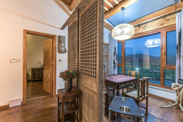 悦南山的大厅格局非常科学、合理。在大厅最里面的位置有观景休息处,并有不完全透视的“挡风”作为屏风来使用,大气、美观而舒服。这种设计与构造如果不是主人用心去管理与经营,哪会这种民宿才会有的格局呢?
