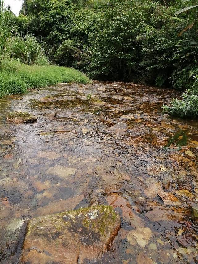 这次国庆节,10月3日--10月8日,我去广西灌阳、富川、贺州自驾游。在贺州昭平县,本来想去罗旭寨看瀑布的,没想到被高德导航到一直在山里转。于是只能既来之则安之,在庇江村里面的大山中,山高林密,一直听到溪水流动的声音,无意中闯到一个小溪边,溪水很浅、很干净,完全是没有污染的。水中石头很多,色彩丰富太漂亮的了。