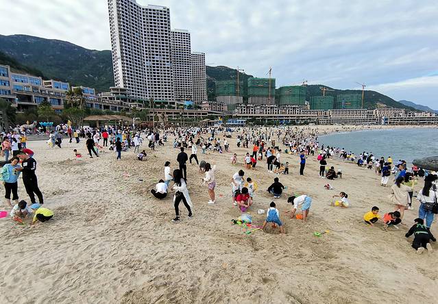 假日的定海湾,客流量爆棚,停车一位难求