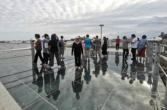 巨型龟旁不远处有玻璃栈道,距离不长,10米下方却是波涛滚滚