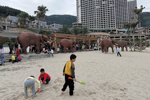 象群雕塑成了孩子们的必经打卡点