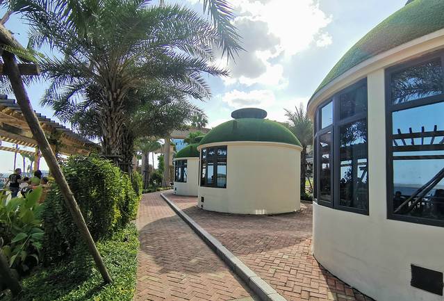 建造在海边的圆柱穹顶型客房住起来估计感觉不赖