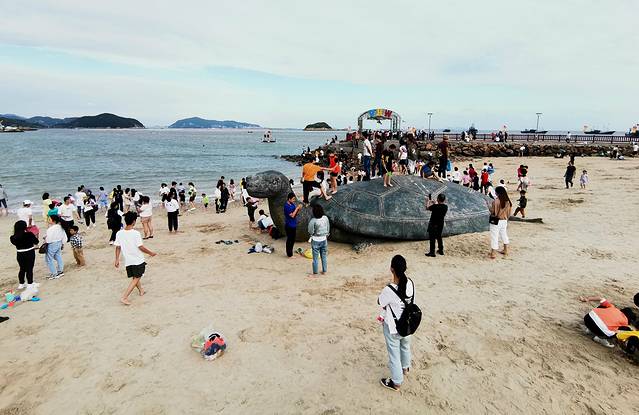 沙滩另一头,退潮才能显露身体的巨型海龟