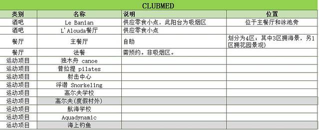 前四晚 ClubMed 房型:club room 10900元 类型:一价全包