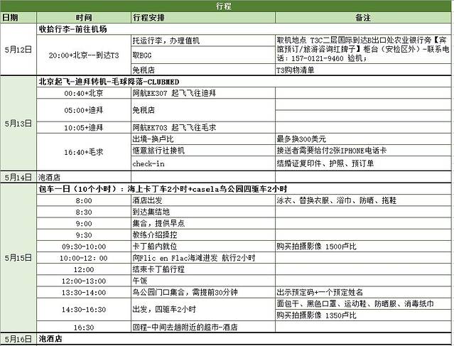 一日行一共就订了两天,行程安排如下截图: