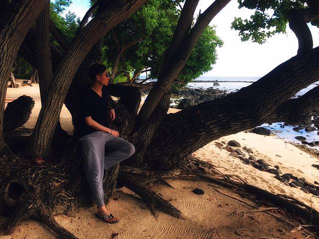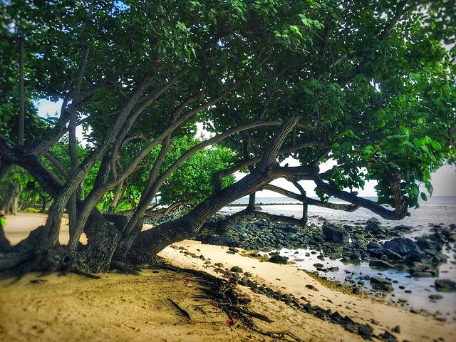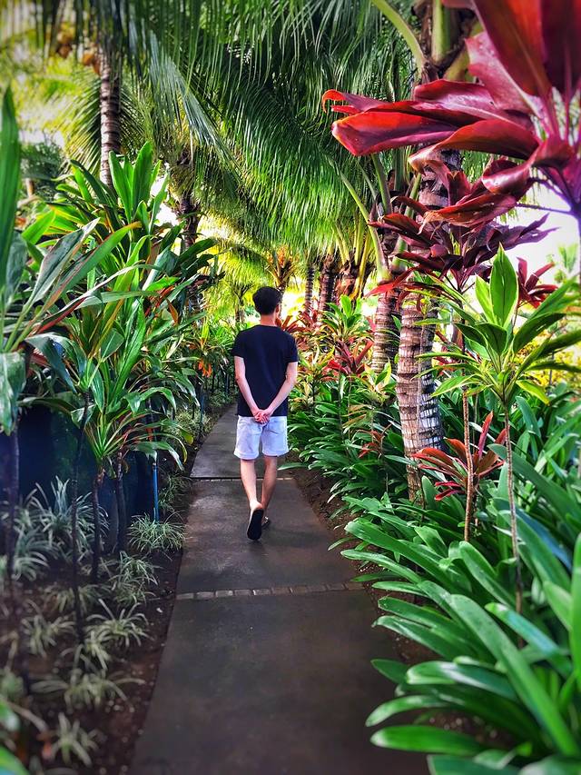 饭完酒店溜达扮酷小蚂,CLUBMED有很多大树和火山石,风景很独特~