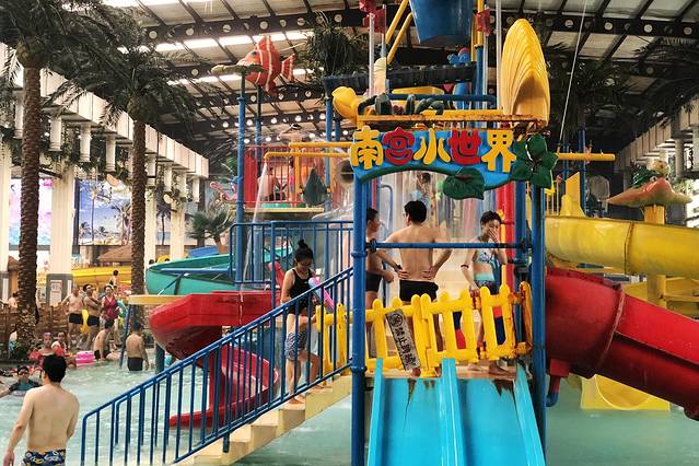 南宫水世界的室内区域非常大,不论是在岸上,还是水上,都设有各种儿童水上设施,像各种坡度的水上滑梯、不同力度的喷水花洒,漂流河道等等。不同年龄阶段的孩子,几乎都能在这里找到和自己相匹配的玩乐项目。