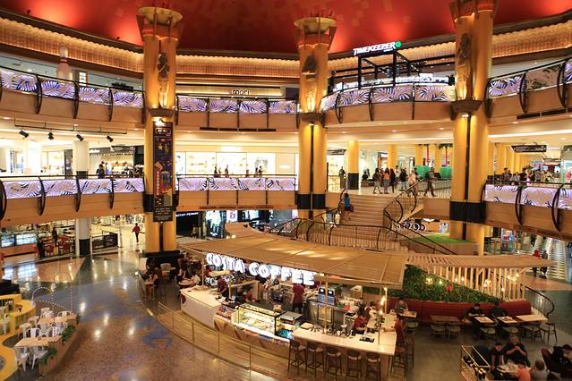 我们下榻的双威度假酒店隔壁,有一家超级大的双威金字塔购物中心,装修是埃及风格,门槛有狮子守护。商场和酒店连通的,逛起来也方便。里面各种品牌、店铺、儿童俱乐部,当然美食也很多,居然还有国内大受欢迎的海底捞。不妙的是这里的海底捞天天排队,从一早就有人在门口守候了,哈哈哈。