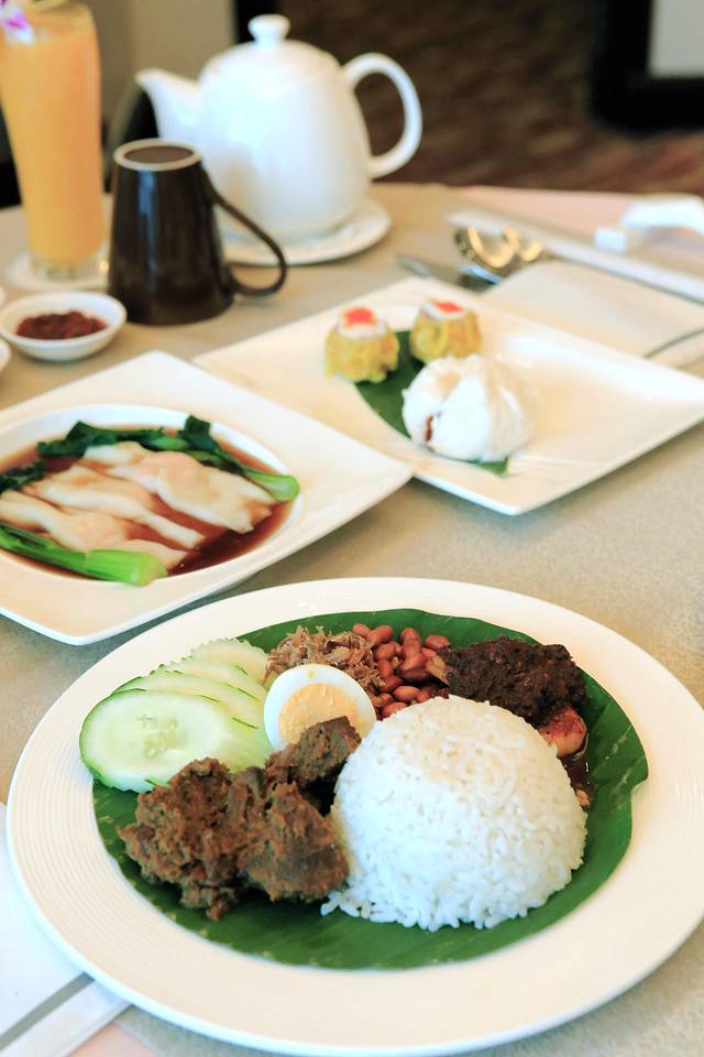 抵达后早餐叫了客房送餐服务,丰盛贴心到惊呆!椰浆饭、鲜虾肠粉、印度煎饼、烧烤酱鸡肉包、扇贝烧麦点心、炒云吞面配手撕烤鸭,饮品是橙汁和拉茶。这个早餐组合,涵盖了马来西亚的多种特色美食。对于吃货,这顿早餐真是旅途中最好的欢迎仪式。