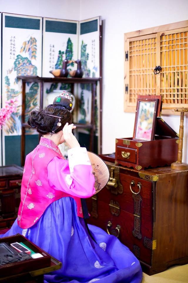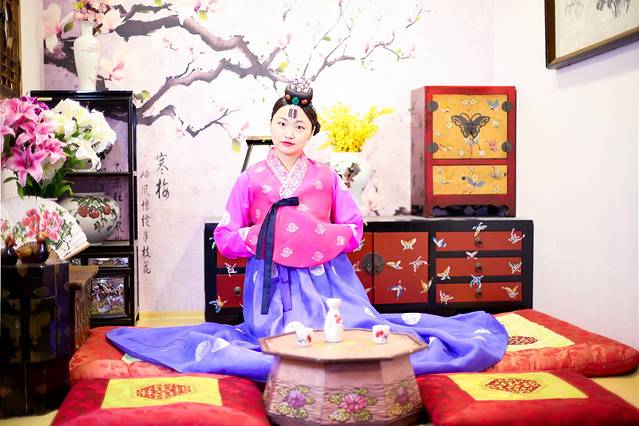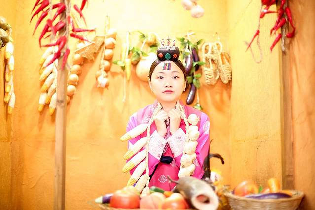 小步和胖儿先去乐天免税店买了一个物美价廉的小包包,然后直接在免税店旁边的韩服店玩起了Cosplay,但是不得不说,韩服的装束一下子把小步的大圆脸体现的淋漓尽致 捂脸小蜂