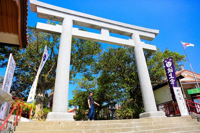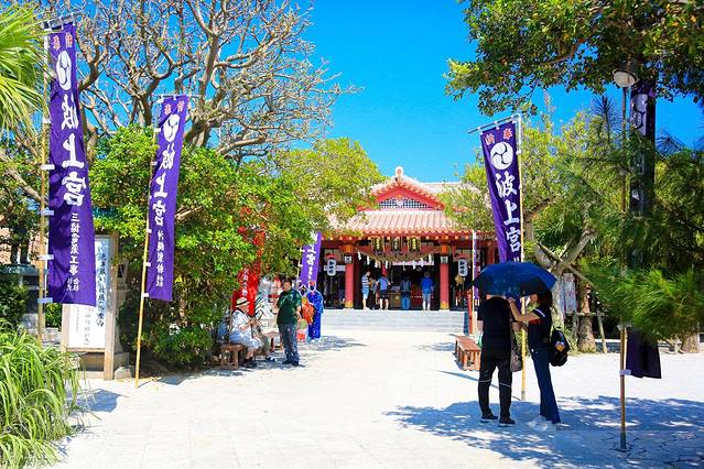 波上宫神宫有“冲绳总镇守”的美誉,“波上宫”顾名思义就是,当大浪开始的时候,远观神社就好像在波浪之上一样,由于位置在那霸市中心,因此虽然很小,但是游客众多,香火也相当不错。而波上宫后面的海滩也作为那霸市区最近的海滩而吸引了不少的游客。