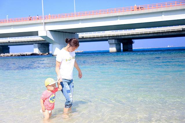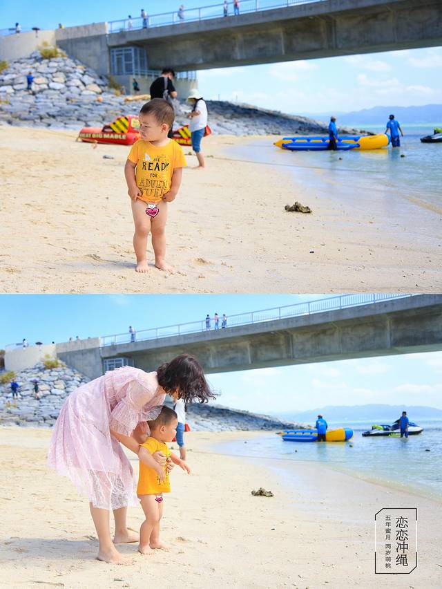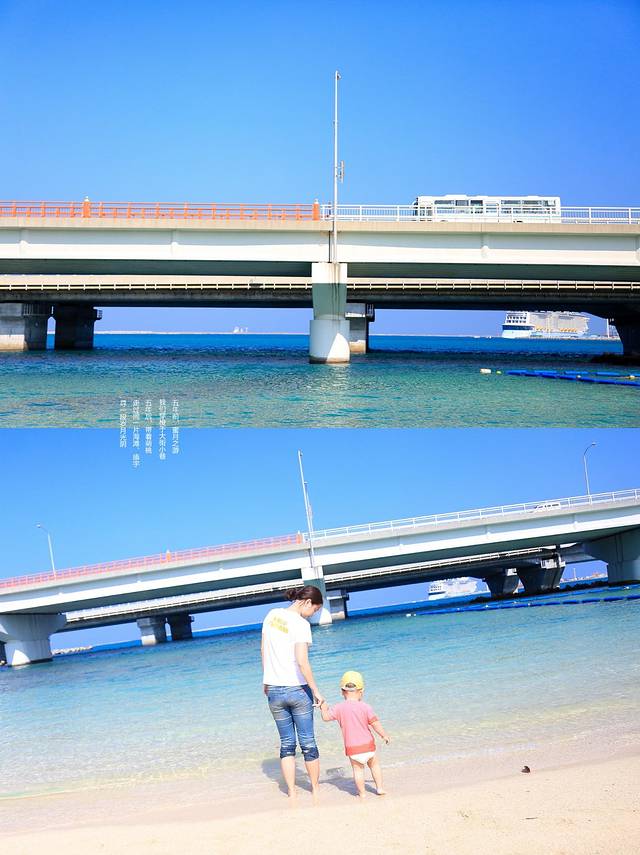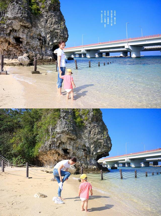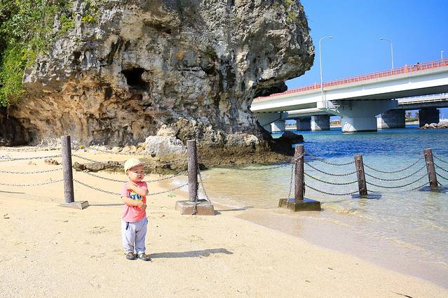 第二站 — 古宇利岛,是一个直径只有8km的圆形岛屿,因为跨海大桥而闻名,听说目前岛上的实际居民已经不到500人了,但由于干净的海滩搭上漂亮的大桥,成为了一日游的必备景点。五年前我们也没有来过,这次一家三口去溜达溜达吧 坏笑小蜂