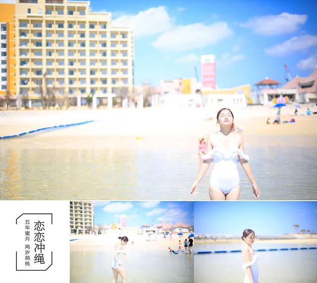 同样的蔚蓝,按照约定,我们带着萌桃儿来了 —— 波上宫沙滩