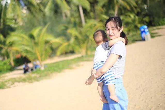 胖桃子你渐渐熟悉喜欢上了三亚的环境,所以你也每天越起越晚,爸爸妈妈这两天真的是累坏了,你知道吗?从早上吃饭,到晚上你睡觉,我们的注意力就都放在你的身上,抱着你,牵着你,生怕你有一点磕碰,吃饭的时候你还不老实,边吃边跑,吃完了还不让爸爸妈妈好好吃饭,你说你有多不乖呀!