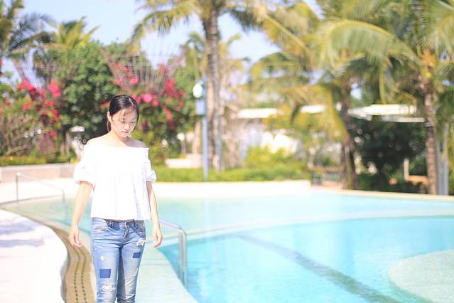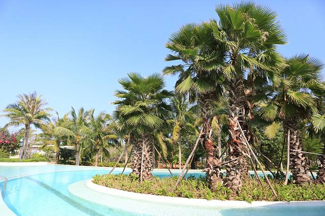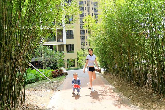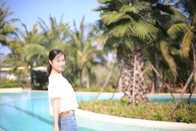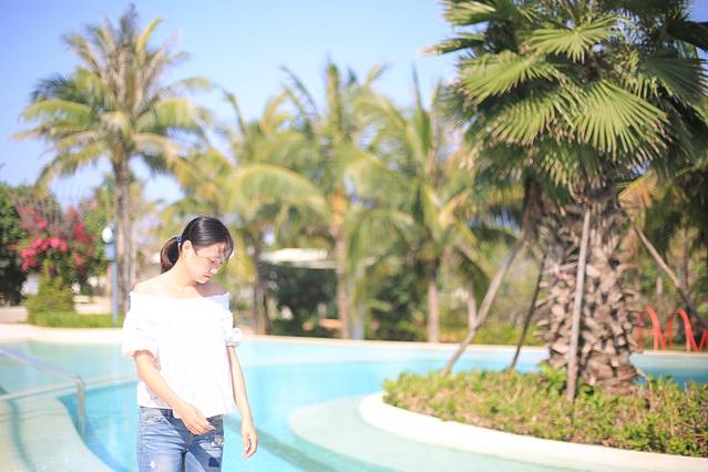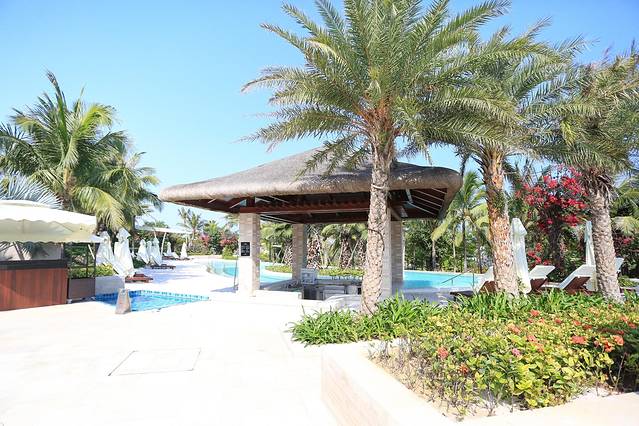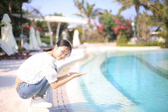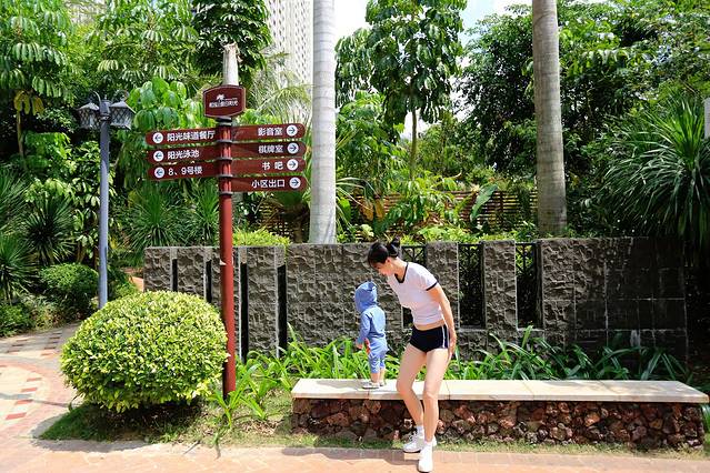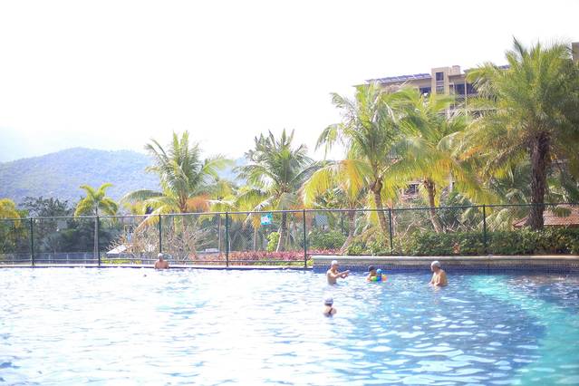 小区里的漂亮的游泳池,相信爸爸妈妈在你后续的三亚旅程中没少带你来吧!