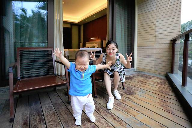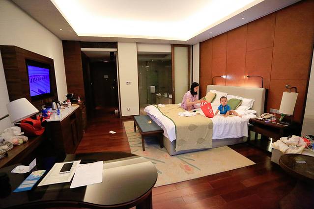 其实本来今天胖桃子你还是应该住在家里的,但是爸爸早上心血来潮,发现海棠湾的一家豪华酒店一不小心降到了500多一晚,那我们不去享受一下吗?所以就促成了你的这第一次带伤的五星之旅。