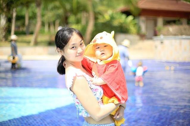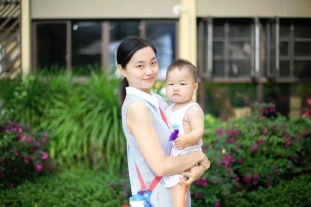 漂亮的妈妈幸福的抱着二十来斤的你,那个时候你除了可爱之外,真的是和帅没有一点关系,但是之前十斤水果的拎不动的妈妈能这样面带微笑,优雅自如的抱着桃桃儿,那时候我真的觉得这就是所谓的伟大的母爱吧。